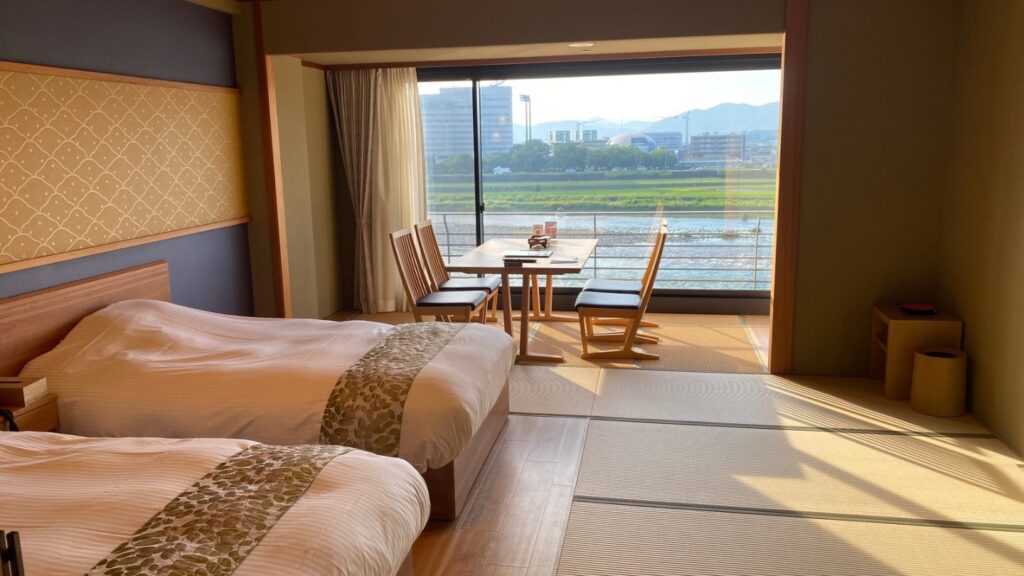 鵜飼舟が動く様子も望めるため、ゆったりとした時間の流れを感じつつお茶菓子を食べたりプライベート空間で寛げます。畳がある客室タイプなら、ゴロゴロしたり足元で感じる畳の質感も思い出の一つになりますよ。