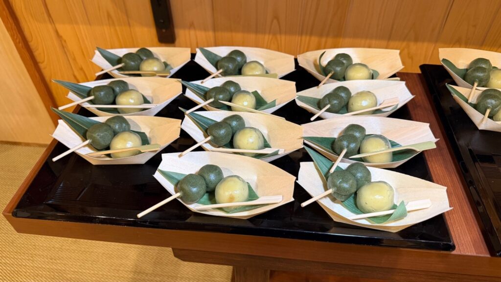 18時~19時に、無料でよもぎ餅と水まんじゅうを食べられます。水まんじゅうは、向日夏の味でさっぱり!甘味も食べられるなんて、至れり尽くせりです!