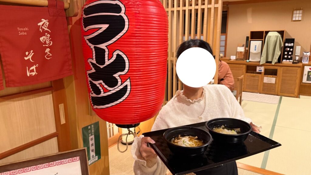 22時~23時に、無料で夜鳴き蕎麦も食べられます。茹でたて麺に醤油スープがあわさり、ほっと一息つきながら旅の思い出を語って振り返る時間が最高です!