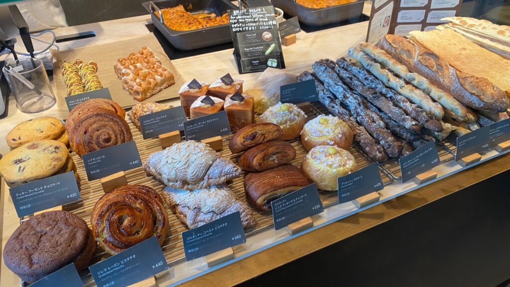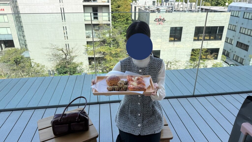 また、外のテラスに出て他のフロアで購入したパンやドリンクを食べられます!中目黒の景色をバックに、開放的な空間でゆったり過ごす時間は日頃の疲れを癒してくれますよ。